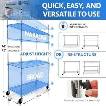 Crescent, Chrome, 36 x 18 x 76, 4000 LBS, Metal Shelves for Storage with Wheels, Ideal for Garage Shelving, 5 Tier Wire Shelving Rack for Kitchen Storage, Heavy Duty Shelving for Home Storage