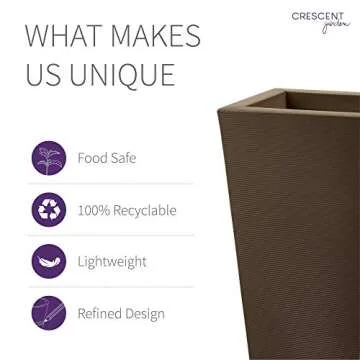 Why You Will Love This Product? The Crescent Garden Bowery Planter elevates your gardening experience with its blend of durability and design. Imagine filling this beautiful pot with vibrant flowers or lush greens, transforming your space into a peaceful oasis. The practicality of easy watering and plant maintenance, combined with the appealing aesthetics, makes this planter a favorite choice among gardening enthusiasts. It not only supports healthy plant growth but also strengthens your commitment to an eco-friendly lifestyle.