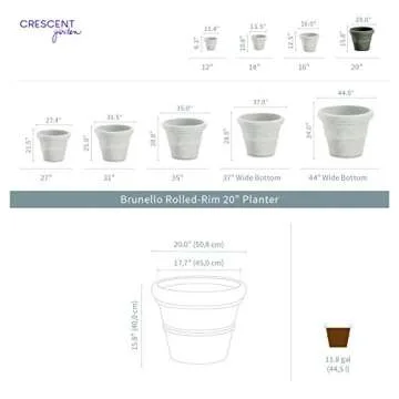 Crescent Garden Brunello Planter - Stylish 20-Inch Rolled-Rim Pot