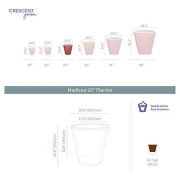 Why You Will Love This Product:Choosing the Crescent Garden Madison Planter means embracing a lifestyle filled with beauty, sustainability, and healthy plant growth. This planter not only elevates your home's aesthetic but also encourages a greener planet with its eco-friendly materials. You’ll find joy in knowing that your plants are thriving, protected from extreme temperatures and conditions. The admiring glances from friends and family will be the cherry on top, making it the perfect blend of style and practicality for any gardening enthusiast.