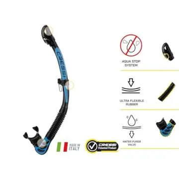 This snorkel is not just functional; it comes in various stylish colors that also appeal to the aesthetic sensibilities of any diver. Whether you're swimming in crystal-clear lagoons or exploring vibrant coral reefs, the Alpha Ultra Dry ensures a worry-free experience submerged in nature’s wonders.