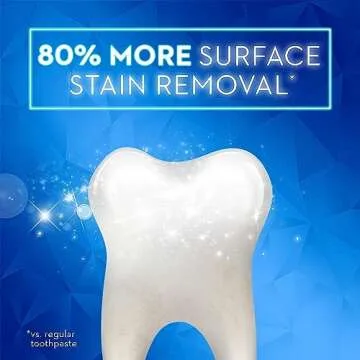 Show moreCrest 3D White Stain Eraser Toothpaste is your ultimate solution for maintaining a brilliant, white smile while effectively fighting everyday stains. This exceptional toothpaste comes in a pack of four 3.1 oz tubes, each filled with the refreshing Polishing Mint flavor that invigorates your mouth. As America’s #1 Whitening Brand, Crest has formulated this toothpaste to remove 80% more surface stains compared to regular toothpaste, making it a must-have in your dental care routine. Designed to tackle tough stains from beverages like tea, coffee, soda, and wine, this toothpaste is gentle on your enamel, ensuring that your teeth are not only whiter but also protected against cavities.