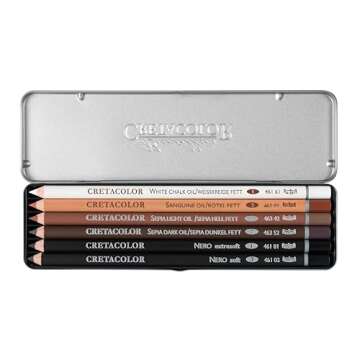 CRETACOLOR Oil Pencil Drawing Set of 6, Oil Pencil Tin box Set of 6,Multi
