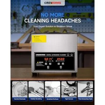 What sets the CREWORKS Ultrasonic Cleaner apart from its competitors is its impressive heating and cleaning capabilities combined with its durability. While many competitors offer lower capacity machines, the CREWORKS model provides a generous 3L tank that can handle larger items or multiple smaller ones simultaneously. Unlike other models that may compromise on power or ease of use, this cleaner ensures a high-performance cleaning experience, making it a worthy investment.