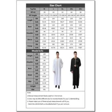 CRFASIBE Mens Thobe Muslim Clothes for Men Thobe Islamic Clothing Arabic Dress for Men Jalabiya,White(M)