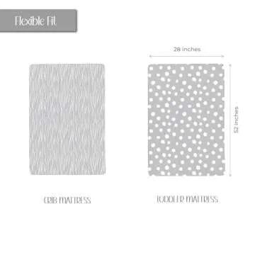 Show moreIntroducing the Crib Sheet Set | Toddler Sheet Set 2 Pack by Ely's & Co., a stunning addition to your nursery that combines style, comfort, and safety. Sporting a modern abstract design in gray and white stripes and dots, these fitted crib sheets are crafted from 100% jersey cotton, offering a luxuriously soft and breathable environment for your baby. Say goodbye to stiff, scratchy sheets and welcome an ultra-cozy feel against your little one’s sensitive skin. The delightful blend of fun patterns not only enhances your nursery decor but also provides a unique touch that complements any theme.