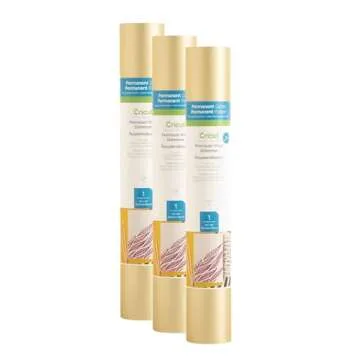 Show more Transform your crafting experience with the Cricut Shimmer Permanent Vinyl - Gold. This stunning three-pack of 12"x48" rolls delivers an exceptional shimmer that adds a touch of elegance to your indoor projects. Designed for compatibility with Cricut Maker and Explore machines, this vinyl not only provides a striking gold hue but also guarantees durability and water resistance. Perfect for a variety of surfaces, from glassware to shower doors and mugs, this vinyl will help you craft beautiful, lasting pieces for any occasion.