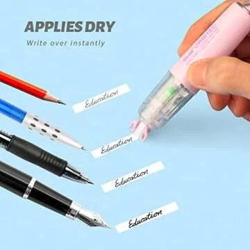 Each pack comes with 4 pieces of white-out tape along with 2 eco-friendly refills, boasting an impressive usable length of 20 feet and a width of 0.2 inches. The built-in PET thickened film tape ensures a flawless application with consistent coverage, while the tear-resistant and flexible properties allow you to correct mistakes without fear of tearing or uneven results. This correction tape is also designed to dry instantly, eliminating any downtime and allowing you to quickly fix errors, especially handy during those crunch-time assignments!