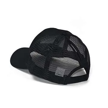 Criss Cross Hat Washed Distressed Baseball Cap Ponytail Hat for Women (BlackMesh)