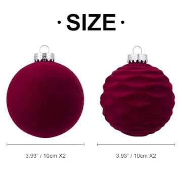Show moreIntroducing the stunning CristBest Velvet Christmas Balls, the epitome of elegance and luxury in holiday decorations. These exquisite ornaments come in a beautiful burgundy hue and are crafted with a unique flocked texture that gives a soft, rich feel, making them perfect for any festive occasion. Each ornament has a substantial size of 4 inches (100mm), ensuring they stand out among traditional decorations. Designed with meticulous detail, they promise to elevate the aesthetic of your Christmas tree and overall holiday decor.
