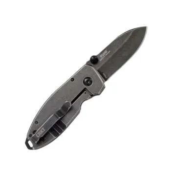 CRKT Squid Folding Pocket Knife: Compact EDC Straight Edge Utility Knife with Stainless Steel Blade and Framelock Handle - Black Stonewash 2490KS