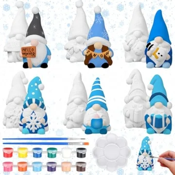 Show more Unleash your creativity and embrace the holiday spirit with the CroBlissful 6 Sets Winter Gnome Paint Your Own Ceramic Statues. This comprehensive DIY painting kit offers an incredible opportunity to transform blank canvas gnome figurines into vibrant, personalized decorations. Featuring a unique collection of six intricately designed ceramic gnome statues, each set comes complete with two brushes, a customizable palette, and a rich selection of 12 vibrant paint colors. Let your imagination flourish as you paint these adorable characters for your home or as heartfelt gifts!