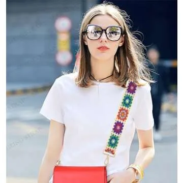 Crochet Flower 1.97" Wide Purse Strap Replacement Crossbody Handbag Shoulder Strap Adjustable