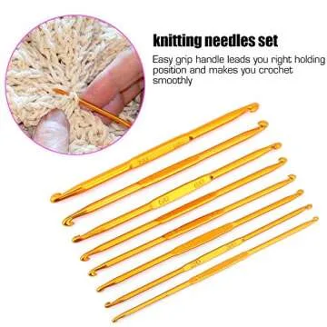 Crochet Hooks Set with Handles 8Pcs Golden Aluminum Double End Knitting Needles for Weaving and Crafting