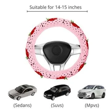 Show more Discover the charm of the Vintage Crochet Steering Wheel Cover, a perfect blend of style and comfort, designed to elevate your driving experience. Featuring a delightful vintage granny square and strawberry pattern, this unique cover not only protects your steering wheel but also adds a splash of personality to your car's interior. Made from high-quality cotton yarn, it offers a soft touch and ensures a comfortable grip for your hands during long drives.