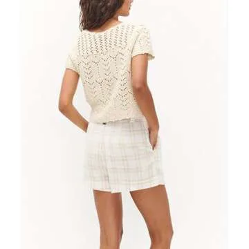 Crochet Tops for Women Knitted Summer Vest Hollow Out Button Down Shirts Short Sleeve Crop Tops Fashion Y2K Tee, Beige, Small