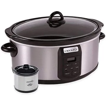 Show moreIntroducing the Crock-Pot 7-Quart Programmable Slow Cooker – a must-have for every busy household! Whether you're a novice cook or a seasoned chef, this slow cooker ensures that preparing meals is as effortless and enjoyable as possible. With its impressive 7-quart capacity, it can serve more than 7 people, making it ideal for family meals, gatherings, or meal prepping for the week. The sleek stainless steel exterior, complemented by black accents, adds a touch of modern elegance to your kitchen. Furthermore, its durable plastic handles remain cool to the touch, ensuring safe handling. The included 16 oz. Little Dipper Warmer is perfect for keeping sauces and dips heated, so you can entertain guests without a hitch.