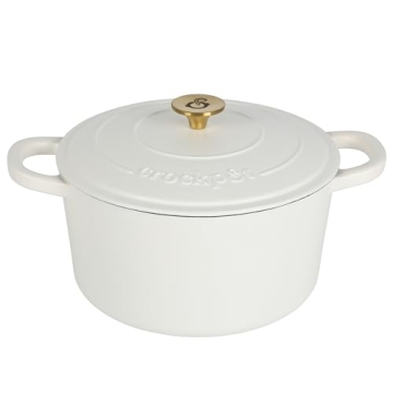 Show moreIntroducing the Crock Pot Artisan 5-Quart Round Dutch Oven in a stunning Matte Linen White with a luxurious Gold Knob, designed for modern cooks who appreciate both style and functionality. Crafted with enameled cast iron, this exceptional Dutch oven eliminates the hassle of seasoning while delivering unmatched heat retention and distribution, making it your go-to kitchen companion for slow cooking mouth-watering meals. Whether you're braising, baking, or simmering, this versatile piece can handle temperatures up to 450 degrees Fahrenheit, ensuring that your culinary creations come out perfect every time. Its elegant design not only adds sophistication to your kitchen but also seamlessly transitions from stovetop to oven to your dining table, making it a true "one-pot wonder".