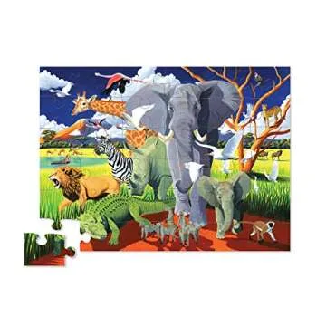 Crocodile Creek - Wild Safari - 36 Piece Jigsaw Floor Puzzle with Heavy-Duty Box for Storage, Large 20" x 27" Completed Size, Designed for Kids Ages 3 Years and up