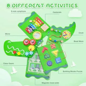 Show moreIntroducing the Crocodile Sensory Toys Activity Wall Panels, an innovative educational Montessori busy board specifically crafted for children 18 months and older. This beautifully designed sensory wall panel is more than just a toy; it is a gateway to exploration and learning. Made from high-quality wood, the durable construction ensures that it stands the test of time, even with the most eager little hands. The kid-friendly green color adds a vibrant touch to any room, turning your child's play area into an exciting creative space.
