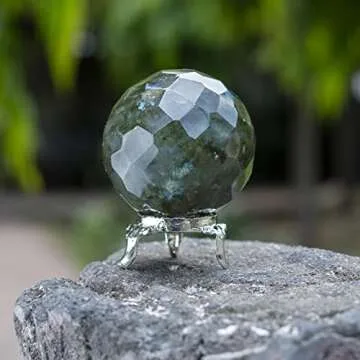 Crocon Labradorite Diamond Cut Stone Sphere with Metal Stand Gemstone Sphere Healing Ball Sculpture Figurine for Fengshui Divination Home Decoration Size: 50-60mm