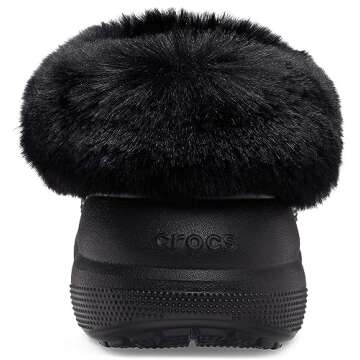 Show moreStep into ultimate comfort with the Crocs Unisex Classic Furever Crush Lined Shoes Clog in classic black, designed for those who refuse to compromise on style or coziness. These innovative clogs feature a relaxed fit, perfect for easy wear, but if you're between sizes, we recommend sizing down for the best fit. The interior and collar are luxuriously lined with faux-shearling, providing that extra layer of warmth and plush comfort on chilly days.