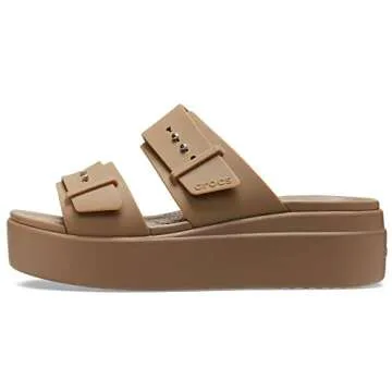 Crocs Women's Brooklyn Buckle Low Wedges, Platform Sandals, Khaki, Numeric_7