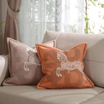 Croker Horse 18x18'' Inches Premium Throw Pillow Cushion Cover - Beige Horse Pattern Wool Cashmere Style Couch Sofa Pillow Covers for Living Room Bedroom