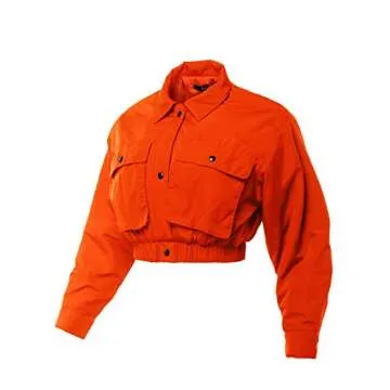 Show moreIntroducing the Cropped Front Two Pocket Snap Quilted Padding Bomber Jacket, a fashionable must-have for your wardrobe! This stylish jacket combines a trendy cropped design with quilted padding, offering a warm yet lightweight feel. Its adjustable fit makes it perfect for all occasions, whether you're heading out for brunch or meeting friends for a night out. Available in a vibrant and stylish orange, this jacket enhances any outfit with a chic, sporty vibe. With its convenient snap closure and practical front pockets, this jacket seamlessly balances functionality and fashion. Made to be worn alone or layered, you can easily transition from chilly mornings to cozy evenings in style!