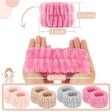 Show more Experience the ultimate solution for mess-free skincare with the Crosize Microfiber Spa Wrist Bands. Designed for anyone who washes their face, these innovative wristbands prevent water from running down your arms and soaking your clothes. Made from ultra-soft, high-density microfiber, they provide exceptional comfort while ensuring superior absorbency that keeps your hands and counters dry. Say goodbye to the frustration of wipes and frequent clean-ups, and hello to a hassle-free skincare routine. With four chic colors included, you can effortlessly match them with your bathroom decor or personal style!