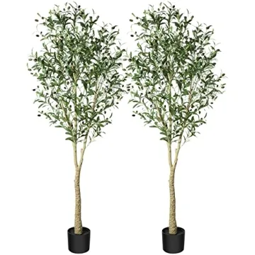 Introducing the CROSOFMI Artificial Olive Tree Plant, an exquisite 6-foot faux topiary designed to breathe life into your indoor and outdoor spaces. With its realistic appearance, this artificial tree is perfect for adding a touch of greenery to any room, office, or garden without the hassle of maintenance. Dressed in a stylish black pot, it stands at an impressive height of 6 feet, boasting a diameter of 7 inches, making it a striking addition to your decor. This stunning piece is carefully...