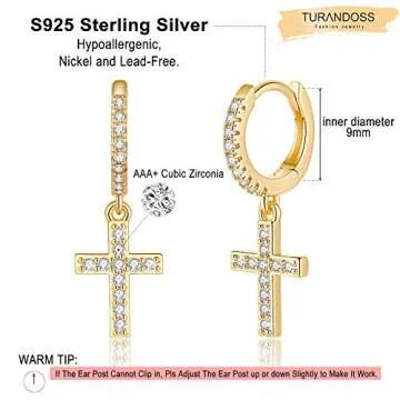 Show moreIntroducing the exquisite Cross Earrings for Women Huggie Hoop, a stunning blend of elegance and simplicity. These earrings are crafted from high-quality 14K gold plated 925 Sterling Silver, ensuring a durable and hypoallergenic design that’s perfect for daily wear. With a thoughtful construction featuring a CZ Cross dangle drop charm measuring 9mm*13mm, these earrings stand out while providing a minimalist touch that's ideal for any occasion. The inner diameter of the hoop is 9mm, allowing for a comfortable and secure fit without compromising style. Enjoy the peace of mind that comes with a high-polished finish, designed not to corrode, rust, or stain, making them a timeless addition to your jewelry collection.