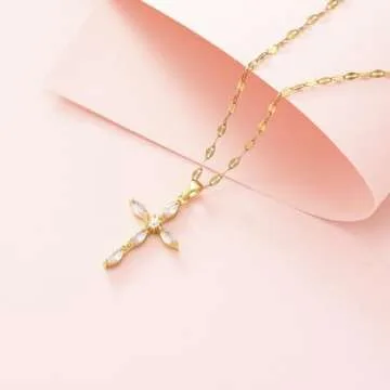 Cross Necklace for Women Diamond Cross Pendant Necklace Cubic Zirconia Crystal Birthstone Cross Necklace Religious Gifts for Women Style1 White