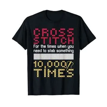Unlike other generic crafting t-shirts, the **Cross Stitch Stab Something 10,000 Times** tee features a humorous, niche-specific design that speaks directly to cross-stitchers. Many competitors offer standard graphics, but our exclusive novelty concept sets this shirt apart. Crafted with superior materials and attention to detail, this t-shirt champions creativity and individuality, ensuring that wearers stand out within crafting circles.
