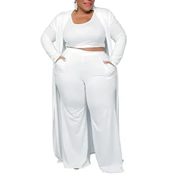 Show moreIntroducing the CROSTRITON Women's 3 Piece Plus Size Suit, a style revolution in loungewear that merges elegance and comfort seamlessly. This exquisite set is crafted from soft, lightweight polyester, ensuring that you look and feel fabulous whether you're relaxing at home or stepping out for a casual occasion. The ensemble includes a flowy, open front long coat, a snug scoop tank top, and high-waisted long pants, each piece designed to provide ultimate functionality and a flattering silhouette. Available in a versatile solid white, this outfit will quickly become a must-have in your wardrobe.