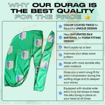 Show moreIntroducing the CROWN Anime Durag Silky 360 Waves - the ultimate accessory for every waver passionate about perfecting their look with style and comfort. This trendy silky du rag is designed for all, whether you're just starting your wave journey or you're an elite expert chasing those flawless wave patterns. Our du rag features long tails and a stretchy, flexible material that ensures a snug, warm fit, providing the essential compression needed during the wolfing stage. No matter the time of day or night, elevate your wave game with this premium item that seamlessly blends functionality with fashion.
