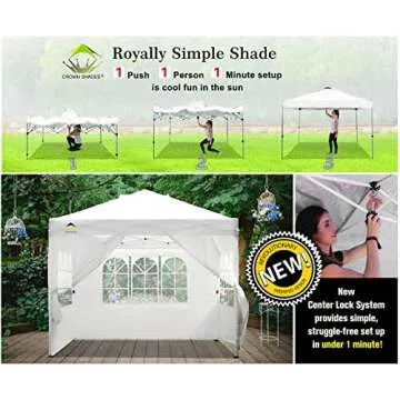 CROWN SHADES 10x10 Pop up Canopy Instant Commercial Canopy with 3 Removable Zipper End Sidewalls with Windows and one with a Center Door, Plus Wheeled Storage Bag, White