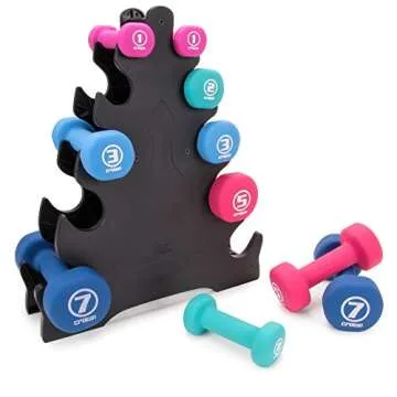 Crown Sporting Goods 5 Pairs of Neoprene Exercise Dumbbells - Fitness Sculpting Hand Weights with Mobile Storage Rack