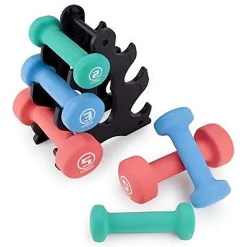 Crown Sporting Goods Set of 3 Pairs of Neoprene Body Sculpting Hand Weights with Stand (Shape)