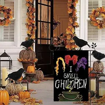 CROWNED BEAUTY Halloween I Smell Children Garden Flag 12×18 Inch Double Sided for Outside Small Burlap Black Holiday Yard Flag