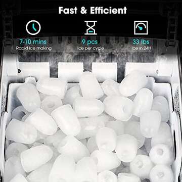Show moreDiscover the ultimate solution to your ice-making needs with the **CROWNFUL Portable Countertop Ice Maker Machine**! Designed with efficiency and user-friendliness in mind, this sleek stainless steel appliance is not just an ordinary ice maker; it's your go-to companion for creating perfect ice cubes for any occasion. The machine produces crunchy, chewable bullet-shaped ice in just **7 to 10 minutes**! Whether you're hosting a dinner party, enjoying a weekend BBQ, or simply need a cold drink on a hot day, CROWNFUL has you covered with the ability to produce an impressive **33 lbs of ice in a single day**. It's the perfect blend of functionality and style, ideal for homes, bars, and offices.