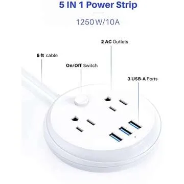 Cruise Essentials Power Strip with USB by KOOSLA, No Surge Protection - Small Nightstand Power Station, 2 Outlets 3 USB Flat Plug for Cruise Ship, Travel, Home, Dorm Room, Desk Accessories
