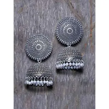 Crunchy Fashion Oxidized Indian Jewelry Stylish Jhumki Jhumka Earrings for Women (Oxidised Silver)