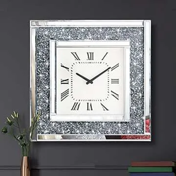Show more Introducing a stunning clock that is sure to catch the eye of anyone who walks into the room. This beautifully designed piece will not only keep you punctual, but it will also add a touch of glamour to your decor. Made by a trusted and renowned brand, this clock combines functionality with artistry, making it a perfect statement piece for your home. Its large and heavy structure ensures durability while its elegant design means it won't just blend into the background – it stands out as a work of art.