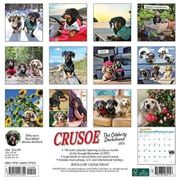 Unlike generic wall calendars, the Crusoe the Celebrity Dachshund 2022 Wall Calendar stands out due to its unique theme dedicated to a well-loved dog, merging charm with functionality. Where other calendars may feature random images, this one weaves a narrative of joy and cuteness that resonates with its target audience, making it both a decorative piece and a practical tool. Competitors often lack the vibrant personality that Crusoe embodies, giving this calendar a unique edge for pet lovers and design aficionados alike.