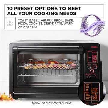 CRUXGG Digital Toaster Oven with Air Frying - Favorite Things 2023-10 Cooking Functions, Two Speed Convection Fan, Digital Display and Large Capacity, Fits 12" Pizza, 6 Slices Toast, 1800W Black