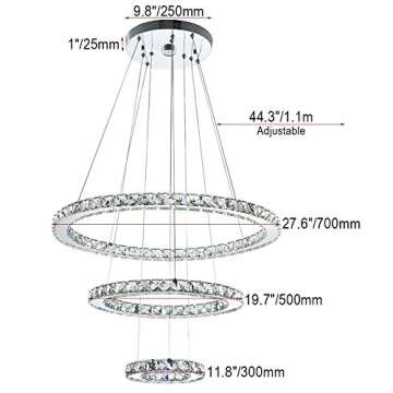 Crystal Chandelier, Adjustable LED Ceiling Light Fixture 27.5" x 19.6"