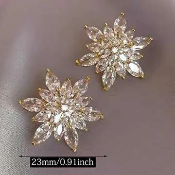Crystal Flower Burst Stud Earrings,Elegant Hypoallergenic Large Big Sparkly CZ Cubic Zirconia Rhinestone Daisy Sunflower Floral Cluster Flower Stud Earrings Bridal Wedding Party Prom Costume Jewelry