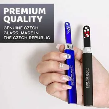 Crystal Nail Files with Case, Bona Fide Beauty Premium Swarovski Crystal Czech Glass Nail Files for Gentle Manicure Nail Care, File in Any Direction, Enjoy a Smooth Finish
