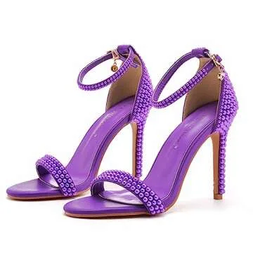 Crystal Queen Full Pearls Heels Sandals Stiletto Heels Peep Toe High Heel Sandals Pump Shoes For Bride Wedding Party Evening PLX11ALWP-Purple-40